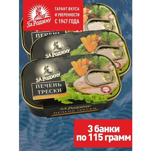 Печень трески натуральная охлажденная За Родину 3 банки по 115 г