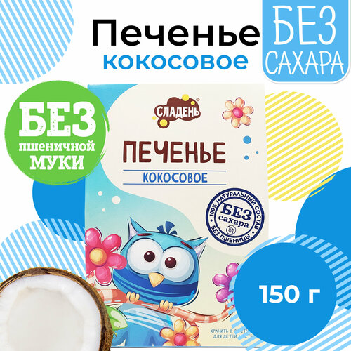 Печенье без сахара, Сладень, 150г, песочное, Кокосовое, на рисовой муке