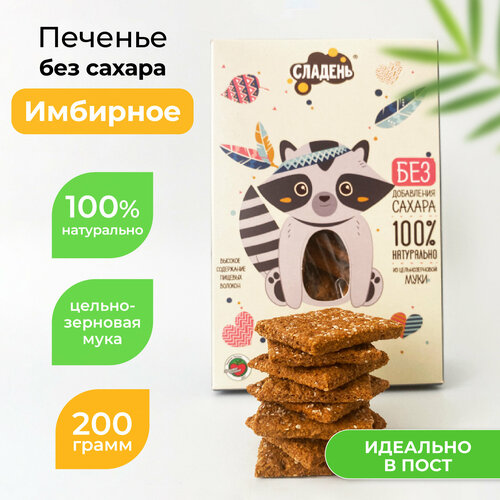 Печенье без сахара, 200г, "Имбирное", Сладень, печенье злаковое, пп печенье