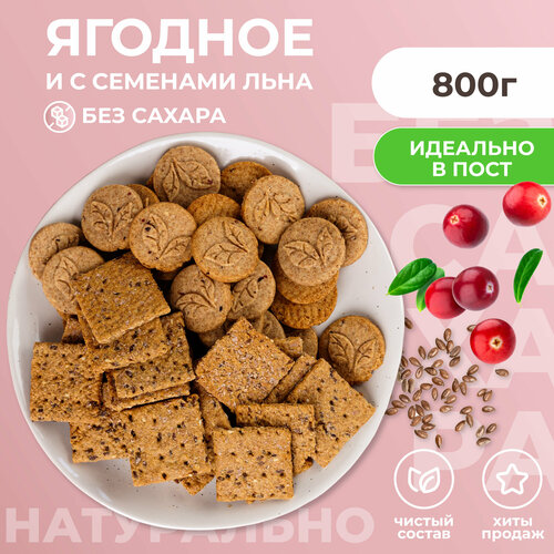 Печенье без сахара, 800г, Ягодное и с Семенами льна, Сладень, печенье злаковое