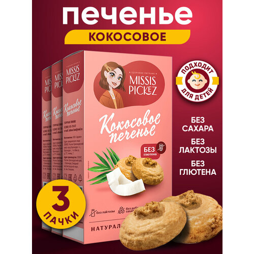 Печенье кокосовое без сахара без глютена "Missis Pickez" 3 пачки по 100 г