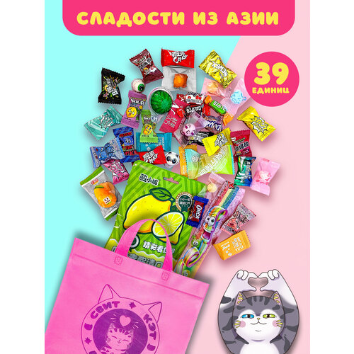 Подарочный мини набор азиатских сладостей Sweet Cat Shop, 39 сладостей, с подарком, коробка