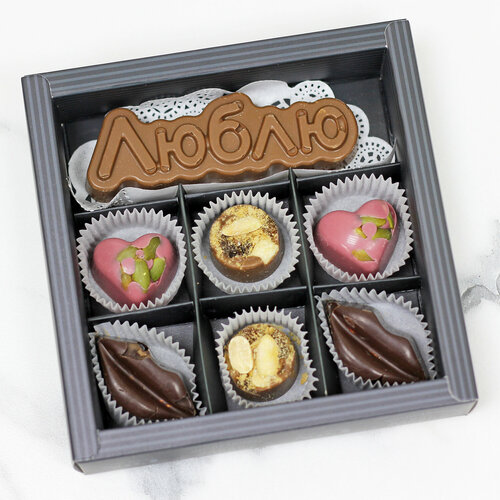 Подарочный набор, шоколад ручной работы "Люблю": надпись и 6 конфет, подарок мужчине, любимому, мужу, парню