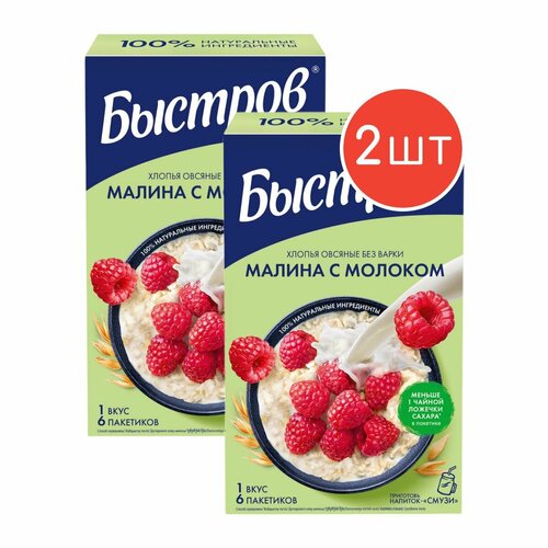 "Быстров" хлопья овсяные, не требующие варки, малина с молоком 240г 2шт