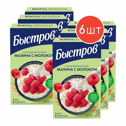 "Быстров" хлопья овсяные, не требующие варки, малина с молоком 240г 6шт