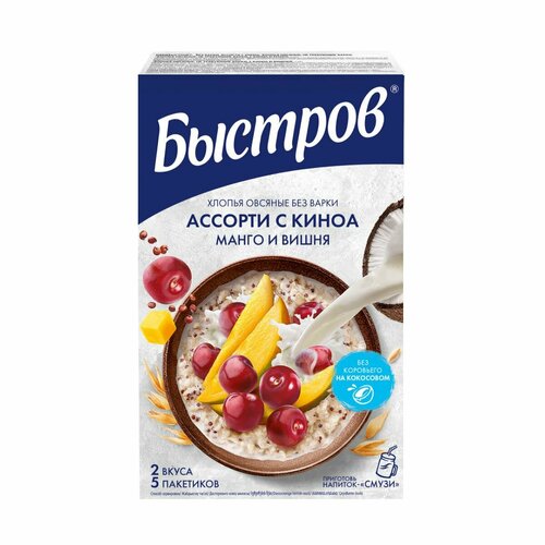 "Быстров" хлопья овсяные, не требующие варки, Ассорти с киноа, манго и вишней 175г 1шт