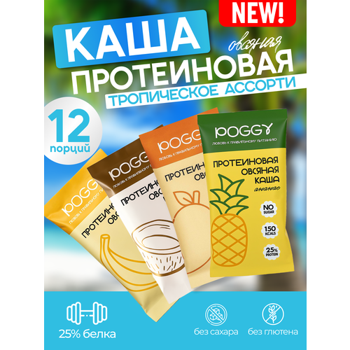 Протеиновая каша быстрого приготовления овсяная без сахара тропическое ассорти 12 шт