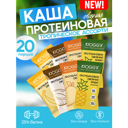 Протеиновая каша быстрого приготовления овсяная без сахара тропическое ассорти 20 шт