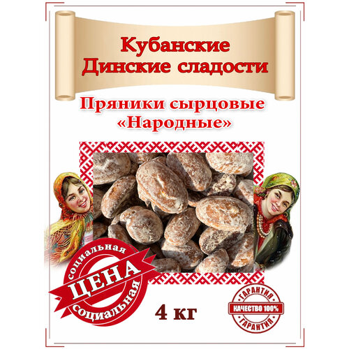 Пряники сырцовые вкуснейшие "НАРОДНЫЕ" коробка 4 кг. ООО "Кубаньмельпродукт"