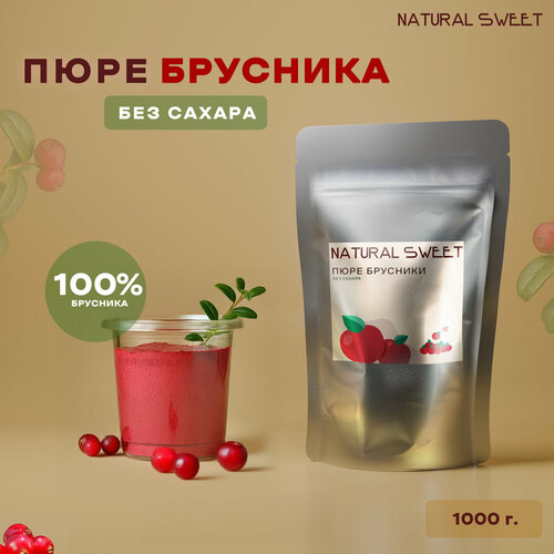 Пюре Брусника Natural Sweet 1 кг без сахара(для лимонада, чая, коктейлей, десертов, смузи)