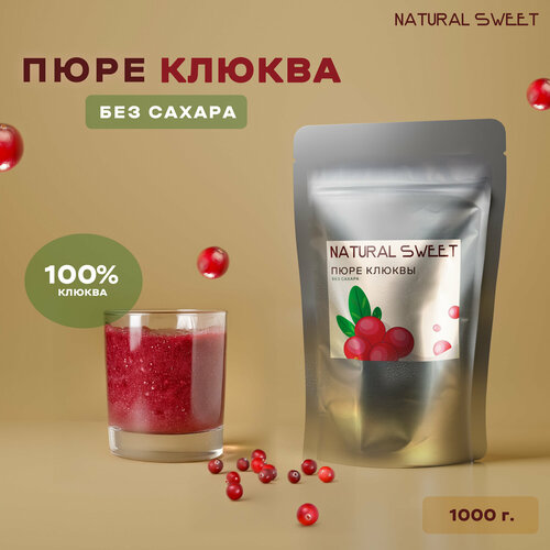 Пюре Клюква Natural Sweet без сахара 1 кг (для лимонада, чая, коктейлей, десертов, смузи)