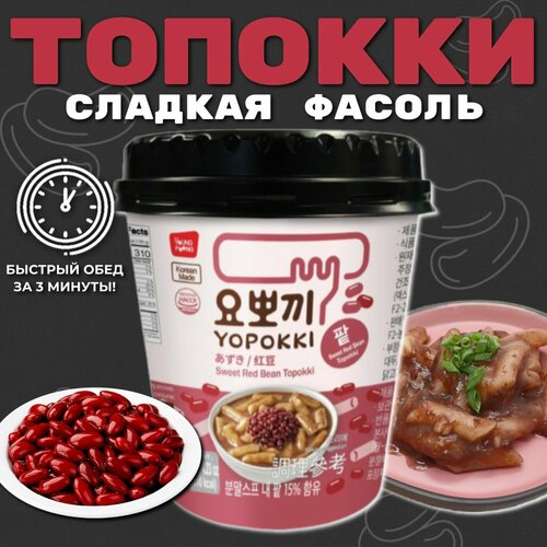 Рисовые палочки Топокки / Токпоки со сладким соусом из Красной фасоли, Корея.