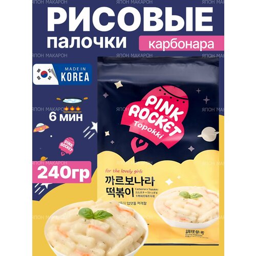 Рисовые палочки Токпокки Pink Rocket с соусом карбонара 120 г, Южная Корея