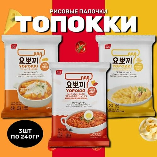 Рисовые палочки Топокки Сливочно-луковый, Сыр, Сладко-острый, (3шт*240гр)