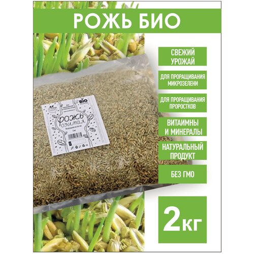 Рожь Озимая Семена ржи БИО, 2 кг. биоорганическая, рожь для проращивания, рожь для микрозелени, проростки