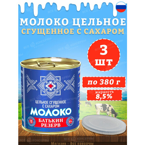 Сгущенное молоко Батькин резерв цельное с сахаром 8.5%, 380 г, 3 уп.