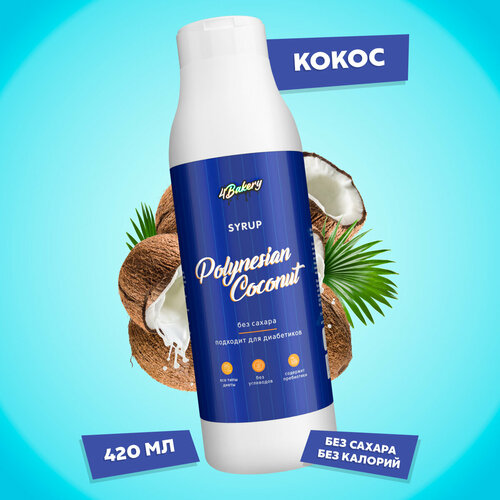 Сироп без сахара и калорий 4Bakery, Кокос, 420 мл, для кофе и коктейлей