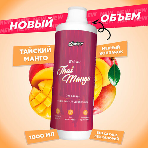 Сироп без сахара и калорий 4Bakery, Манго, 1000 мл, для кофе и коктейлей
