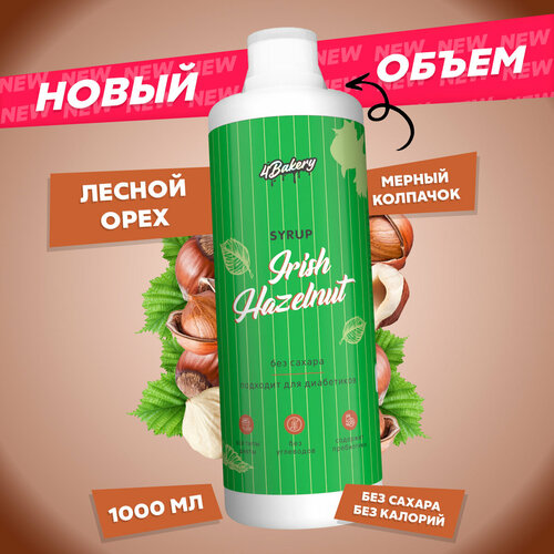 Сироп без сахара и калорий 4Bakery, Лесной орех, 1000 мл, для кофе и коктейлей