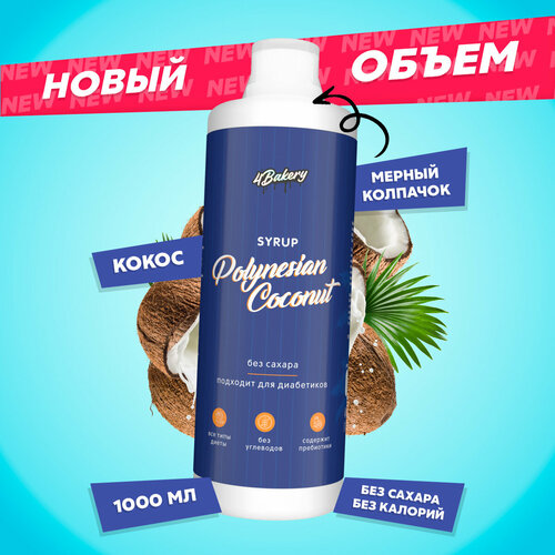 Сироп без сахара и калорий 4Bakery, Кокос, 1000 мл, для кофе и коктейлей