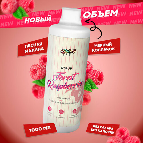 Сироп без сахара и калорий 4Bakery, Малина, 1000 мл, для кофе и коктейлей