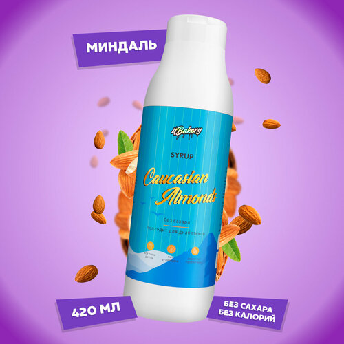 Сироп без сахара и калорий 4Bakery, Миндаль, 420 мл, для кофе и коктейлей
