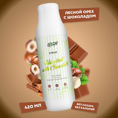 Сироп без сахара и калорий 4Bakery, Шоколад Лесной орех, 420 мл, для кофе и коктейлей