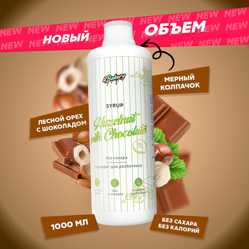 Сироп без сахара и калорий 4Bakery, Шоколад Лесной орех, 1000 мл, для кофе и коктейлей