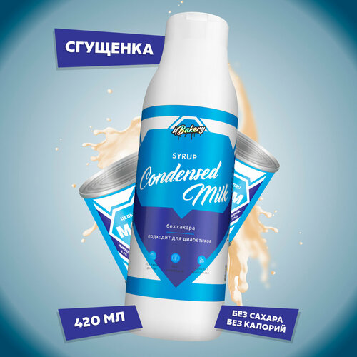 Сироп без сахара и калорий 4Bakery, Сгущеное молоко, 420 мл, для кофе и коктейлей