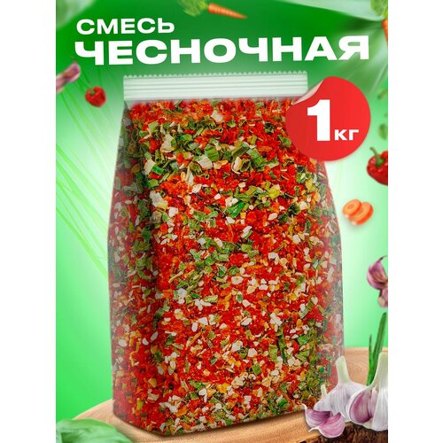 Смесь овощей сушеных чесночная 1кг в пакете. Морковь, чеснок, паприка красная, лук зеленый.