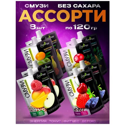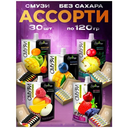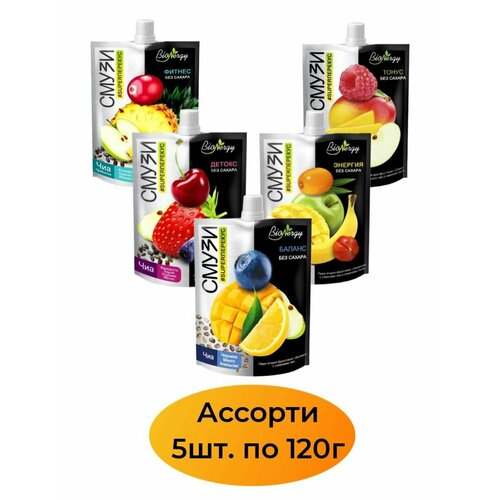 Смузи Ассорти BioNergy, полезный, в наборе 5 упаковок по 120 грамм