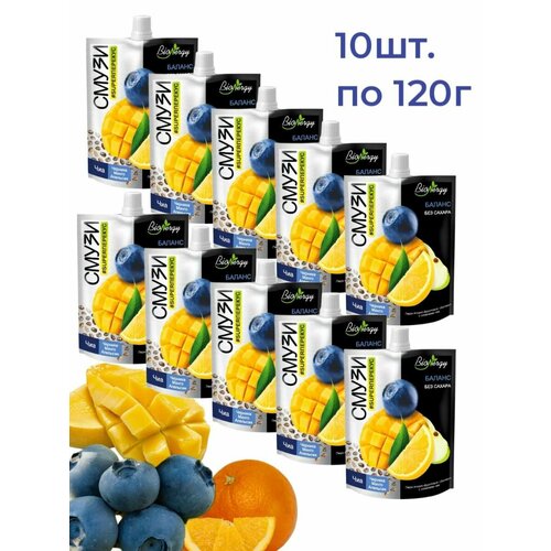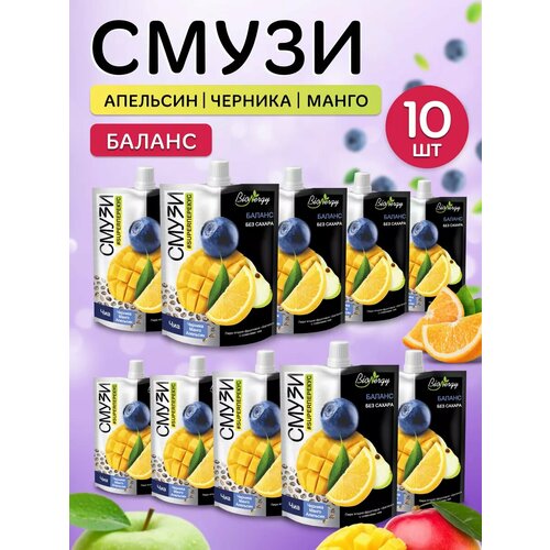 Смузи баланс черника, манго, апельсин BioNergy(в наборе 10 шт по 120г)