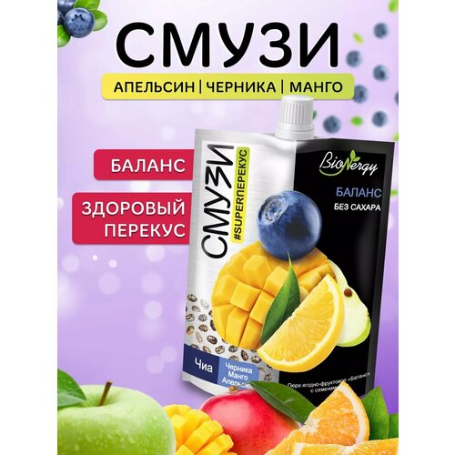 Смузи баланс черника, манго, апельсин BioNergy(в наборе 3шт по 120г)
