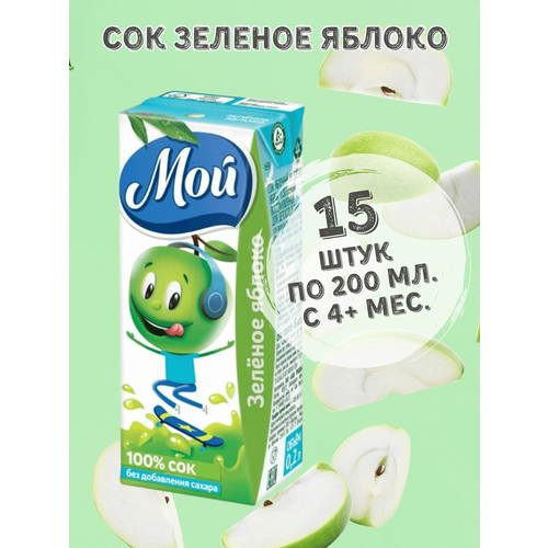 Сок детский МОЙ из зеленых яблок с 4 -х мес, 15 штук по 200 мл.