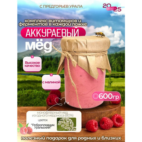 Аккураевый мёд с Малиной. Натуральный мёд. 600грамм.