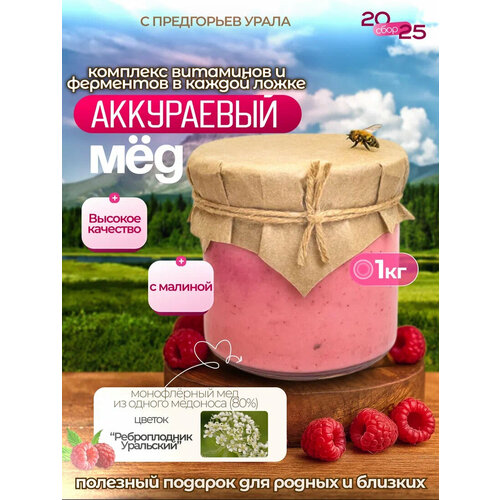 Аккураевый мёд с Малиной, Натуральный мёд. 1000грамм.