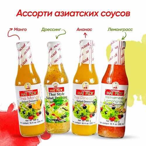 Тайские соусы MAE PLOY Ассорти 4 шт по 285 мл: манго, дрессинг для салата, ананас, лемонграсс