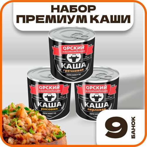 Ассорти-бокс каш Премиум, в наборе 9 банок, ГОСТ, Орский мясокомбинат