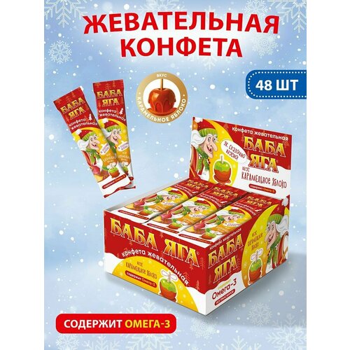 Баба ЯГА Новогодняя жевательная конфета карамельное яблоко, 11г, 48 шт.