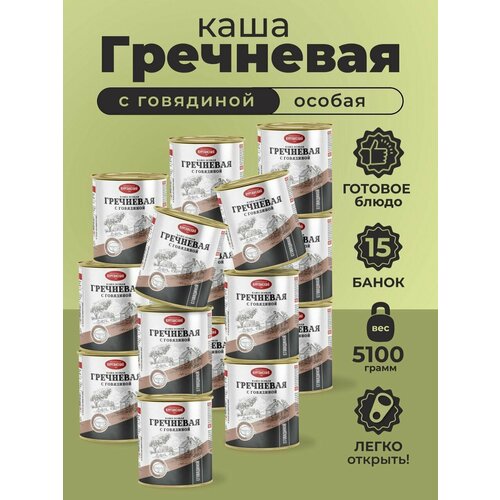 Тушенка Каша особая гречневая с тушеной говядиной 340 г. Стандарт — 15 шт