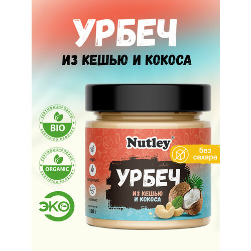 Урбеч кокос-кешью Nutley без сахара, диетическая ореховая паста из кешью и кокоса, 180 г