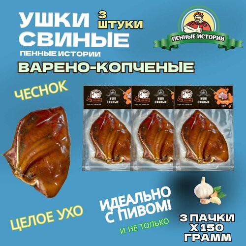 Ушки свиные к пиву (Целое) "Пенные Истории" Чеснок 3 шт по 150 грамм