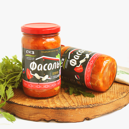 Фасоль печеная с овощами 360 гр. СКЗ Постный продукт. стеклянная банка