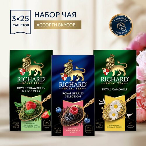 Чай Richard R. Cranberry&Cloudberry, King’s Choice, Goji & Wild Strawberry, набор ассорти 3 уп х 25 пак