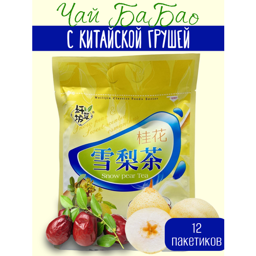 Чай Бабао, 8 драгоценностей с китайской грушей и душистым османтусом, 12 пакетиков, освежающий, Синофарм