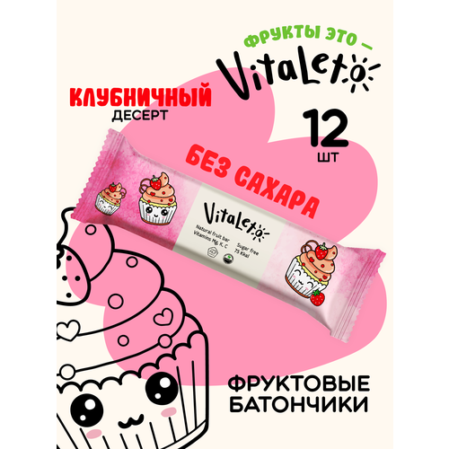 Батончик фруктовый без сахара Vitaleto "Клубничный десерт" 30г , комплект — (12шт), Виталето, полезный перекус