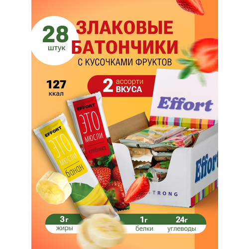 Батончики Effort злаковые с бананом и клубникой ассорти 28 шт по 35 гр