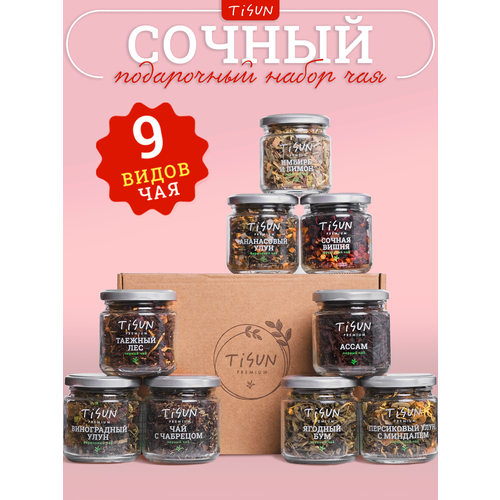 Чай листовой черный и зеленый, набор чая: травяной, каркаде, улун Tisun ассорти из 9 вкусов