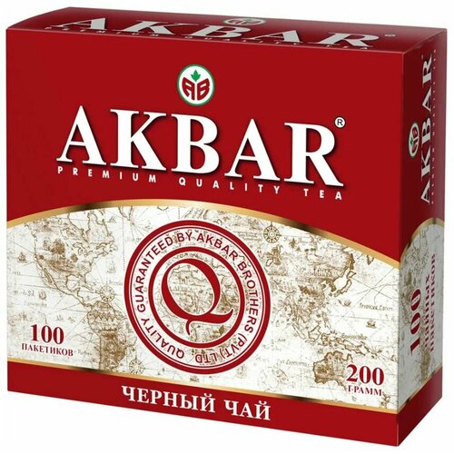 Чай черный Akbar Ceylon Tea в пакетиках, классический, травы, 100 пак.