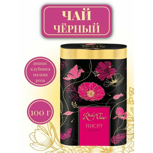 Чай черный Riche Natur Felicity с цукатами ананаса и кусочками клубники жестяная банка 100 г